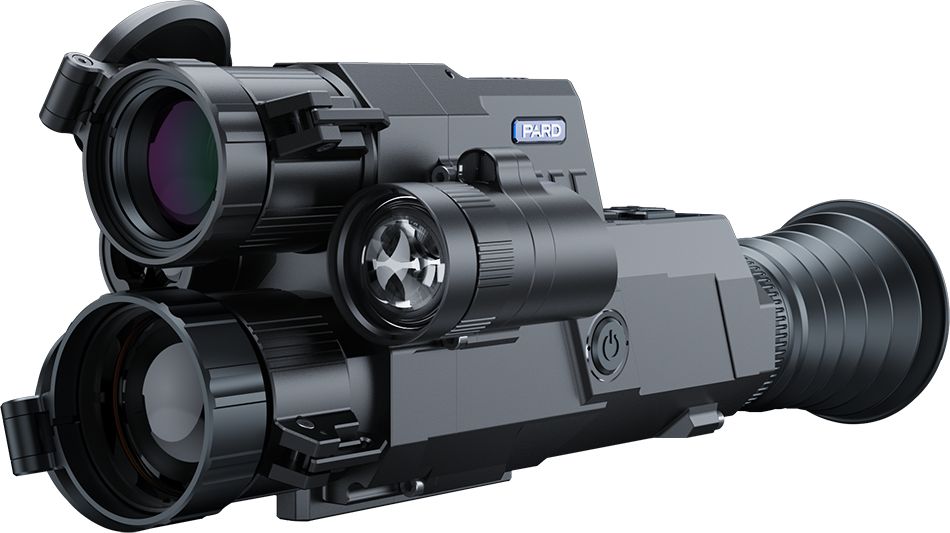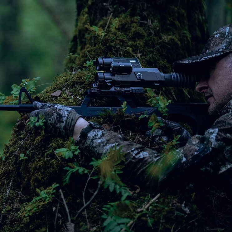 - Сочетает тепловизионный и цифровой прицел день/ночь